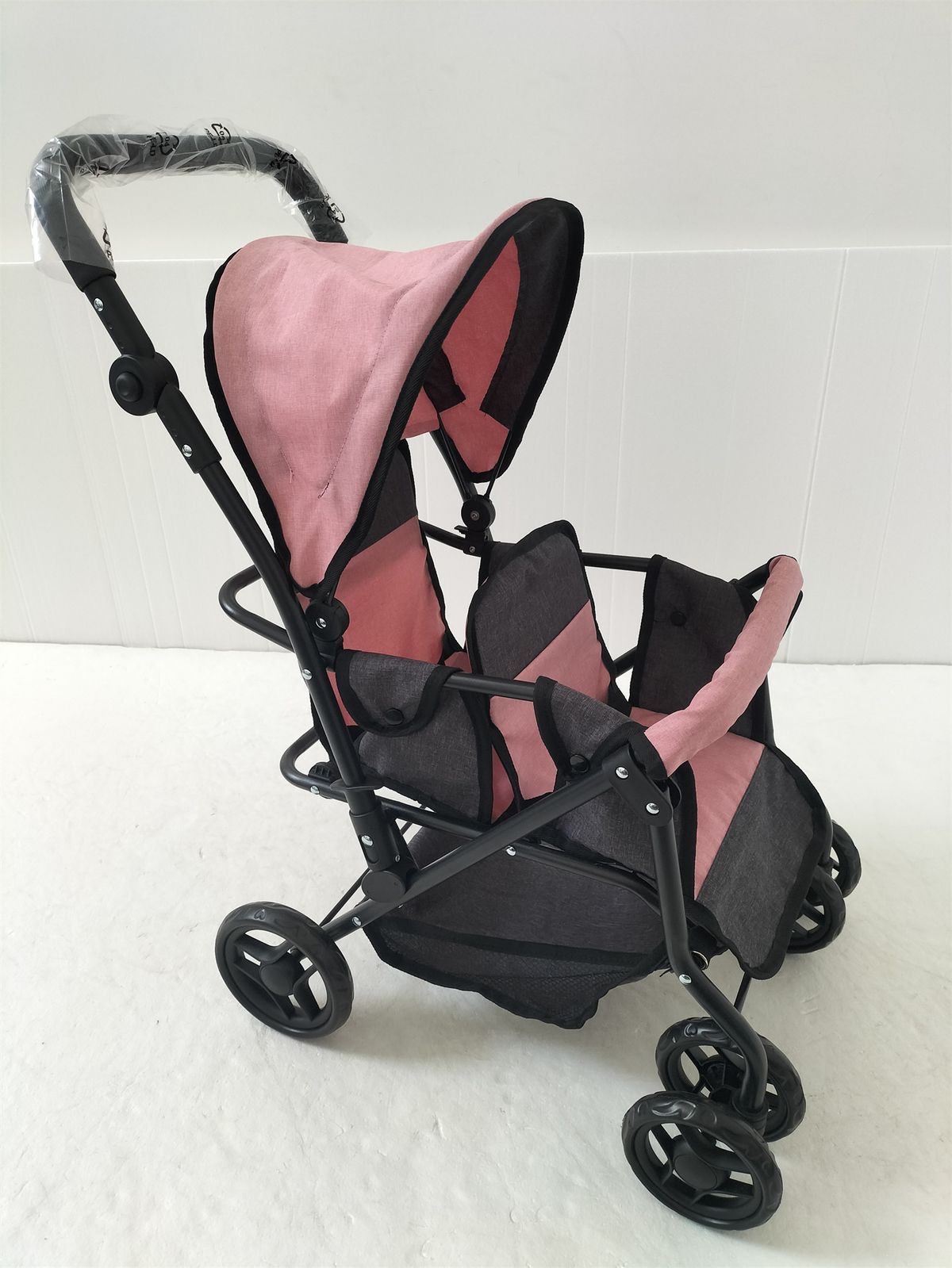 Coche gemelos ruega giratoria rosa-negro